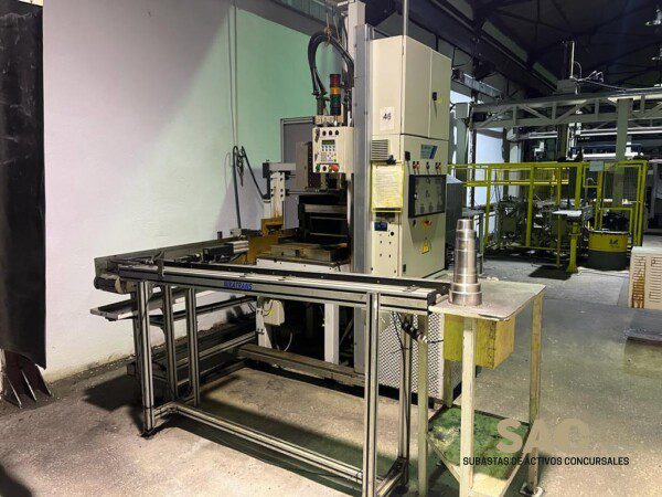 Entran las piezas en la cinta, entran al primer puesto donde le impriman color, vuelve a la cinta y pasa al detector, se trata de una luz negra que destaca el color de la imprimación para facilitar la detección de posibles grietas, vuelve a la cinta y entra en la ultima parte de la maquina que elimina la posible imantación en la pieza.