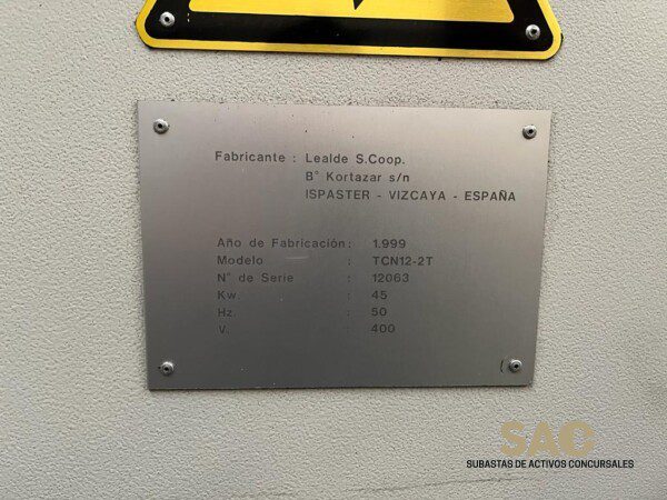 El Torno Danobat Lealde TCN12 12063 es una máquina de torneado de alto rendimiento que destaca por su precisión y potencia. Con una construcción robusta y un sistema de control avanzado, este torno ofrece una gran versatilidad para el mecanizado de piezas de diversos tamaños y materiales. Su capacidad de carga y su alta velocidad de trabajo hacen de este torno una elección ideal para proyectos exigentes que requieren resultados impecables.