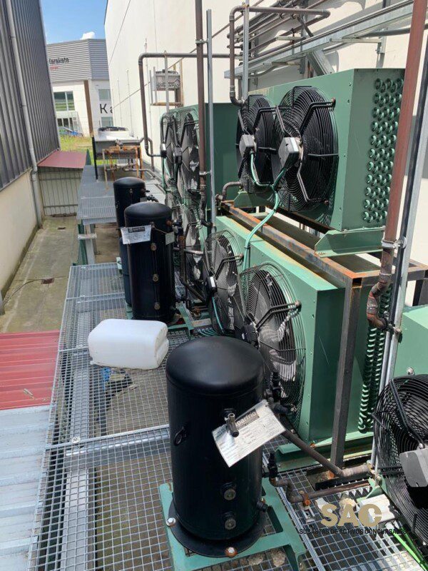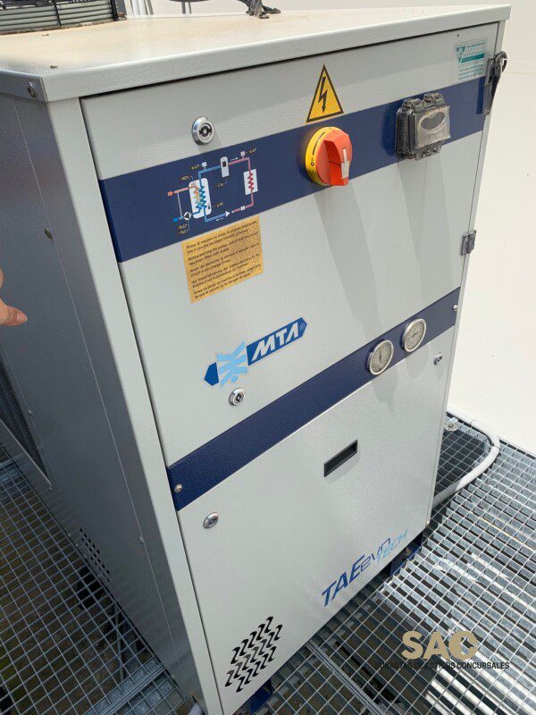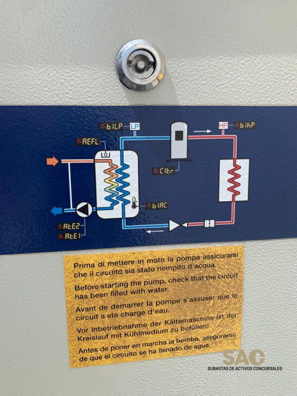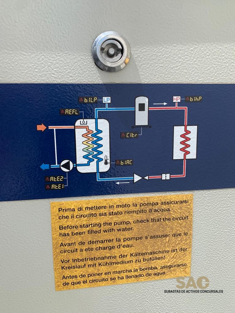 - Evaporador con bobina de aletas sumergida con tubos de cobre y aletas de aluminio dentro del tanque inercial.